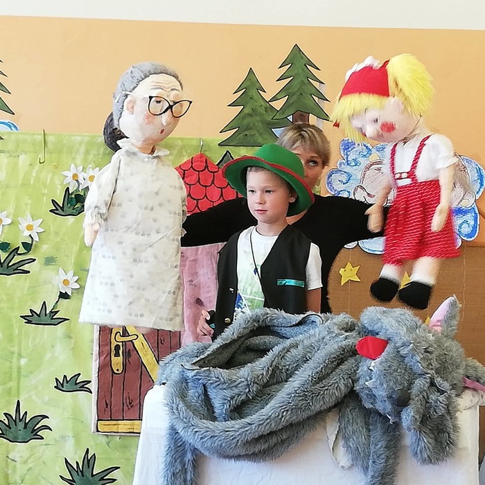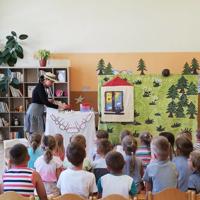 Děti z MŠ na návštěvě divadelního představení v MŠ v Buku.