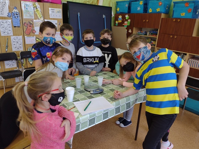 A jestlipak víte, co váží víc, zda kelímek plný vody, sněhu nebo ledu? Opět jsme tipovali, odhadovali a při vážení se pak opravdu velmi hlasitě radovali ti, kteří odpověděli správně.